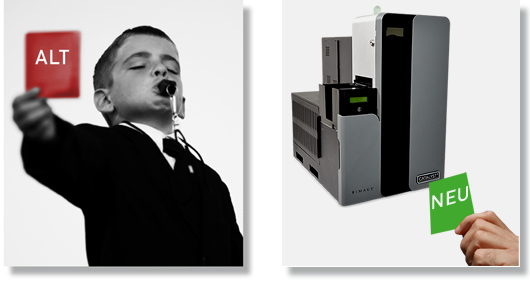 Sie kaufen bis zum 31. Juli 2024 ein neues Rimage Catalyst 6000N System und geben uns Ihr „altes“ Gerät - egal welcher Hersteller - zurück. Dieser Wechsel ist uns eine stolze Ablösesumme wert!